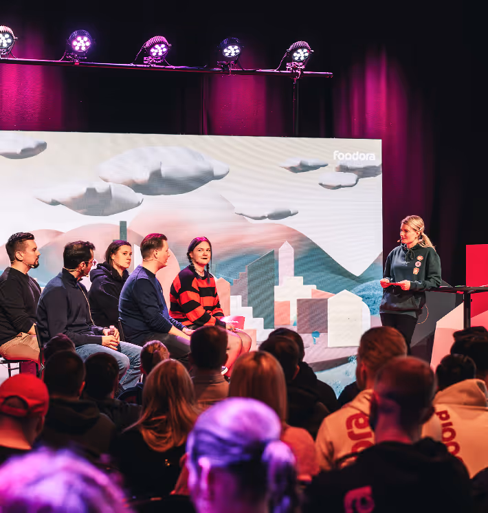 Loimme kickoff-tapahtuman, jossa kukaan ei jäänyt kuunteluoppilaaksi. Elävä ja osallistava konsepti muotoiltiin kaupunginomaiseksi elämykseksi, jossa foodoralaiset matkustivat tästä hetkestä tulevaisuuteen.